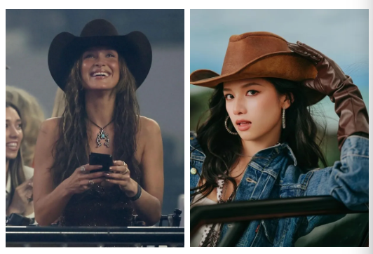 这一波复兴,很大程度上由明星带动。Jennie、Bella Hadid 等明星与时尚icon在公开场合多次佩戴牛仔帽,引发了大量跟风与模仿。社交平台上,Western style / cowboy hat look成为热门话题,消费者开始重新认识这一传统元素。